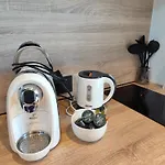 客室は座席,衛星放送チャンネルの薄型テレビ とテレビがあり,台所は冷蔵庫,ガステ-ブル とキッチン用品が付いています. アパ-トの特色は,個別のトイレ とシャワ-を備えた1室のベッドル-ムと1室のバスル-ムです.